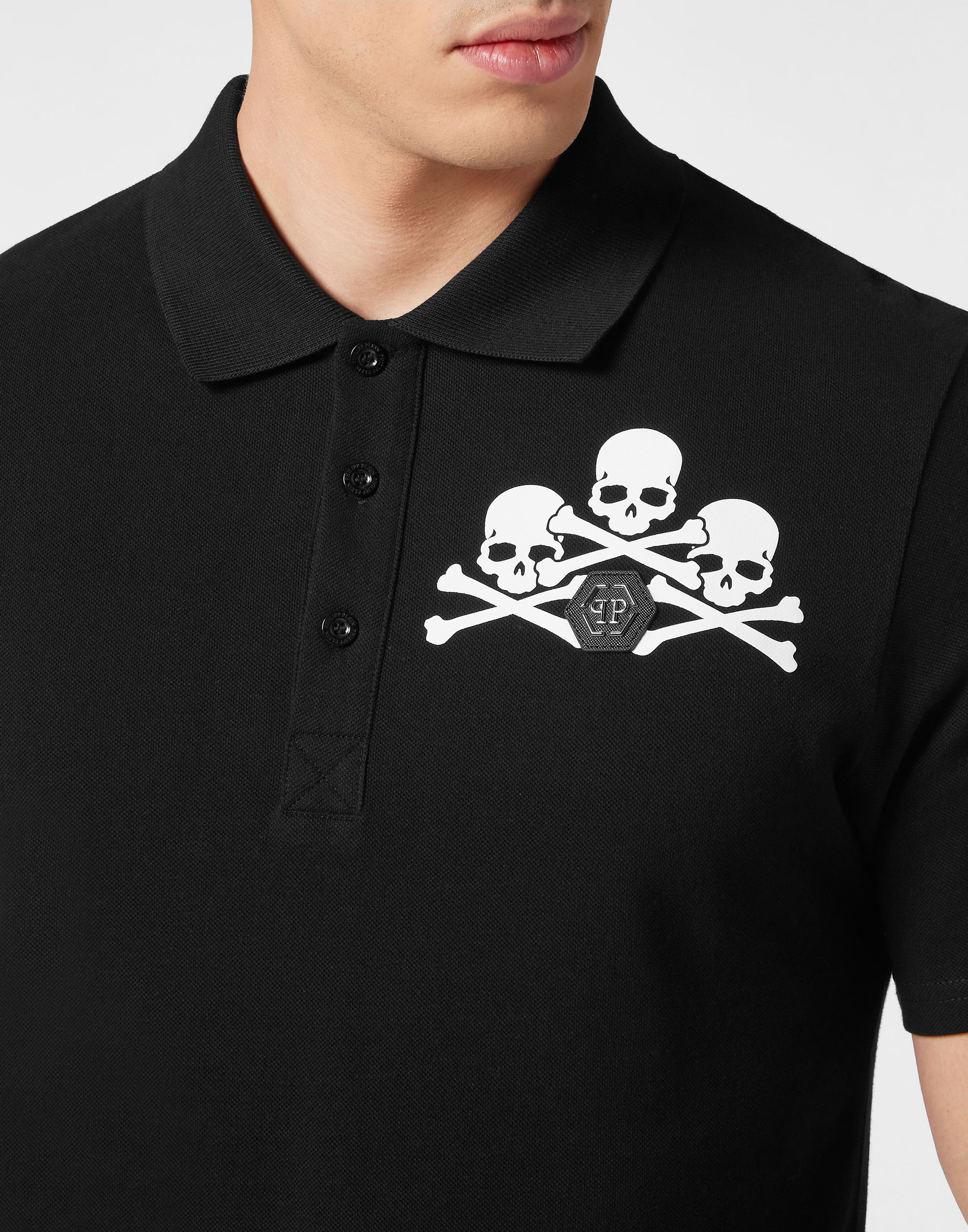 ●The standout feature of this polo shirt is the Skull&Bones print, adding a touch of edginess to your look.